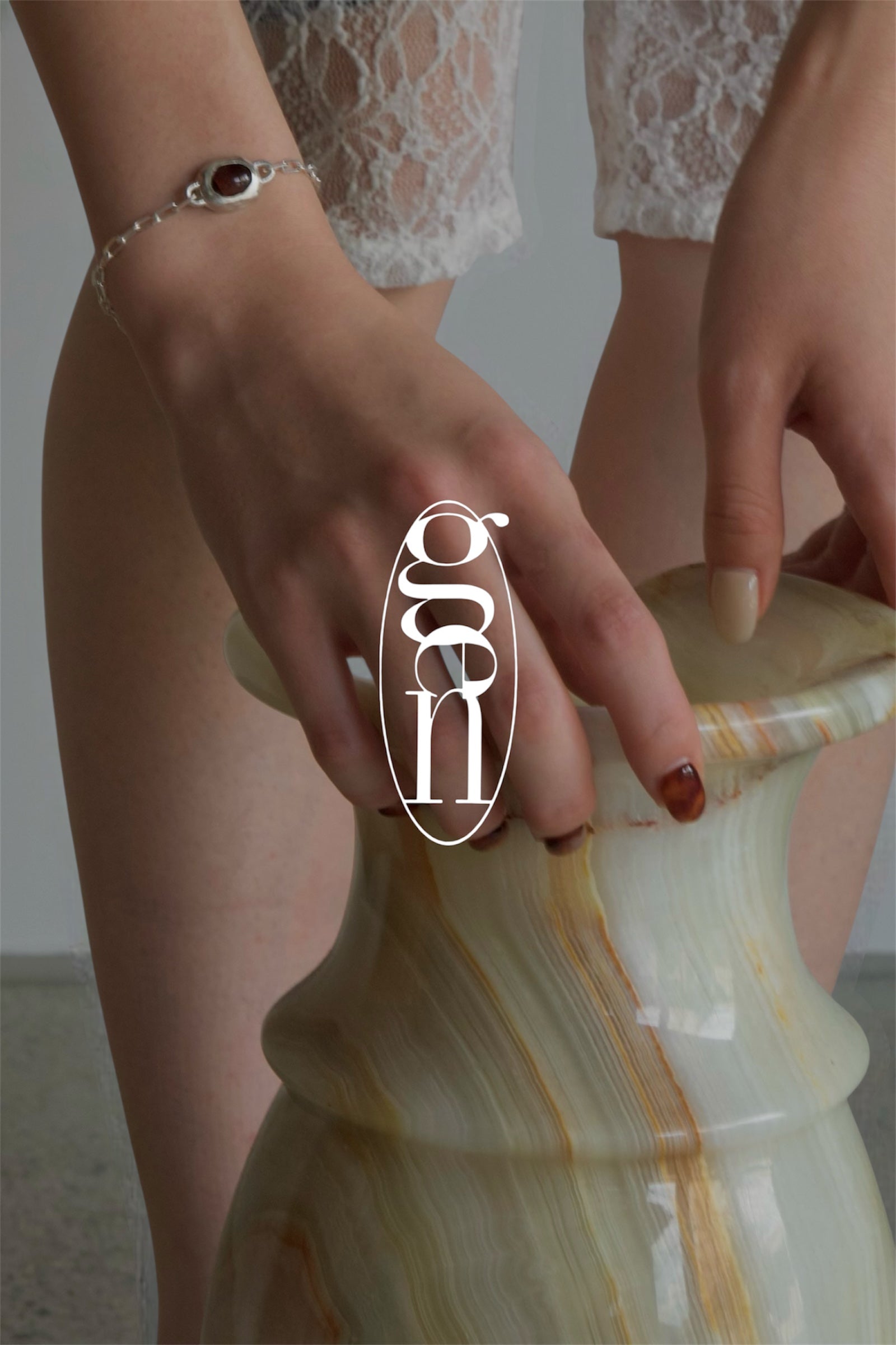 STONE CHAIN BRACELET 【crimson】