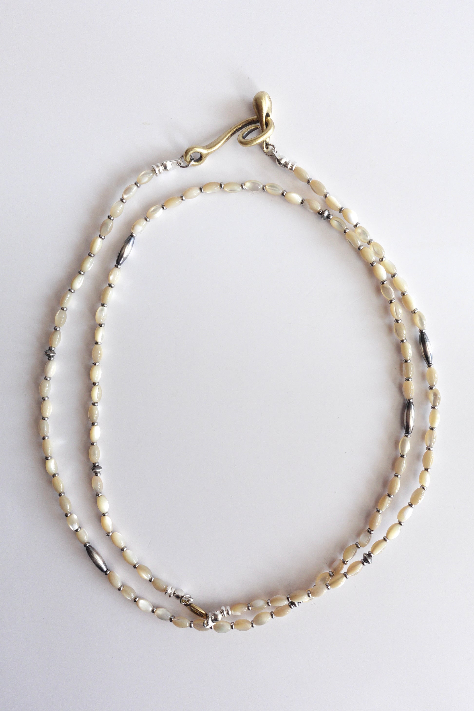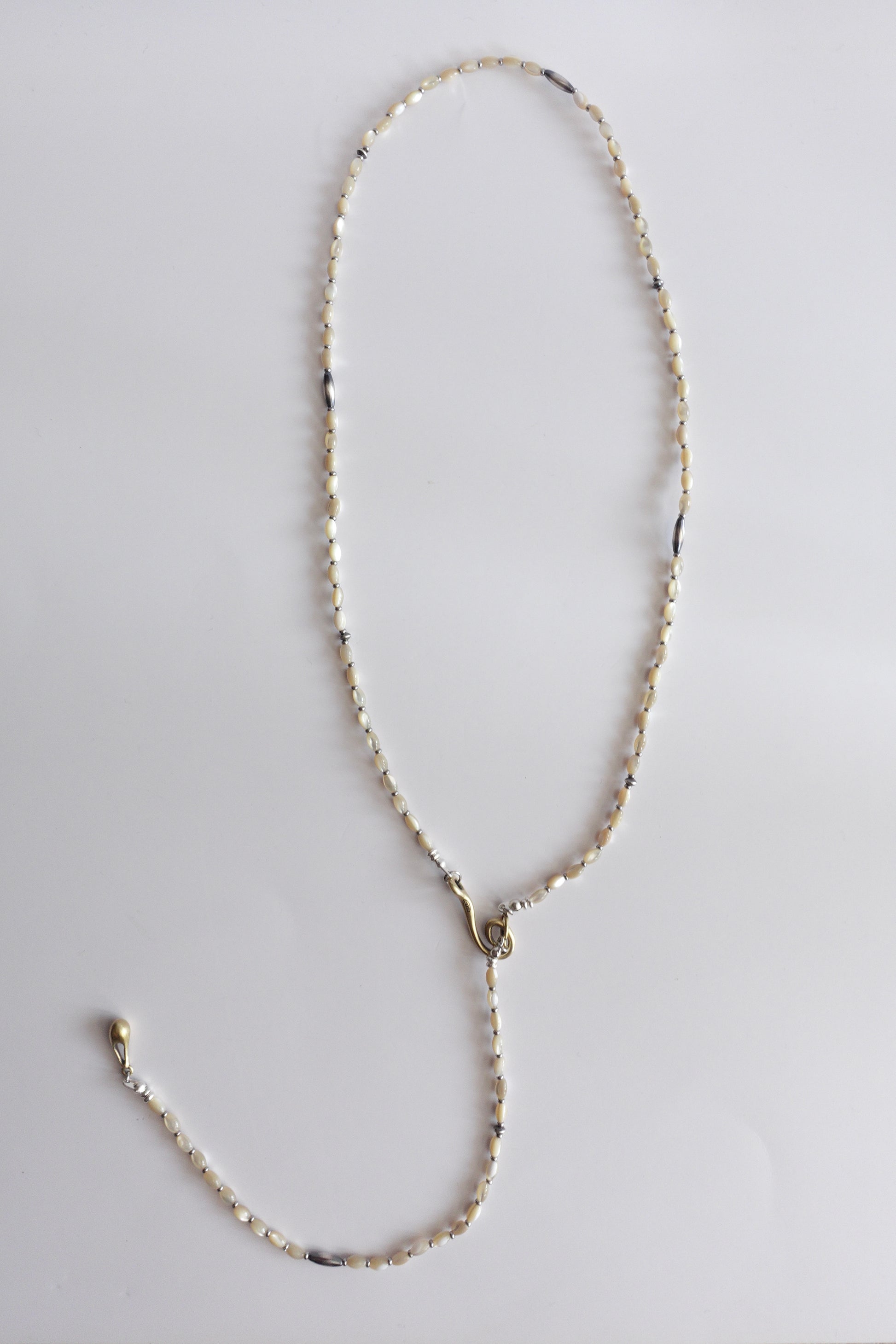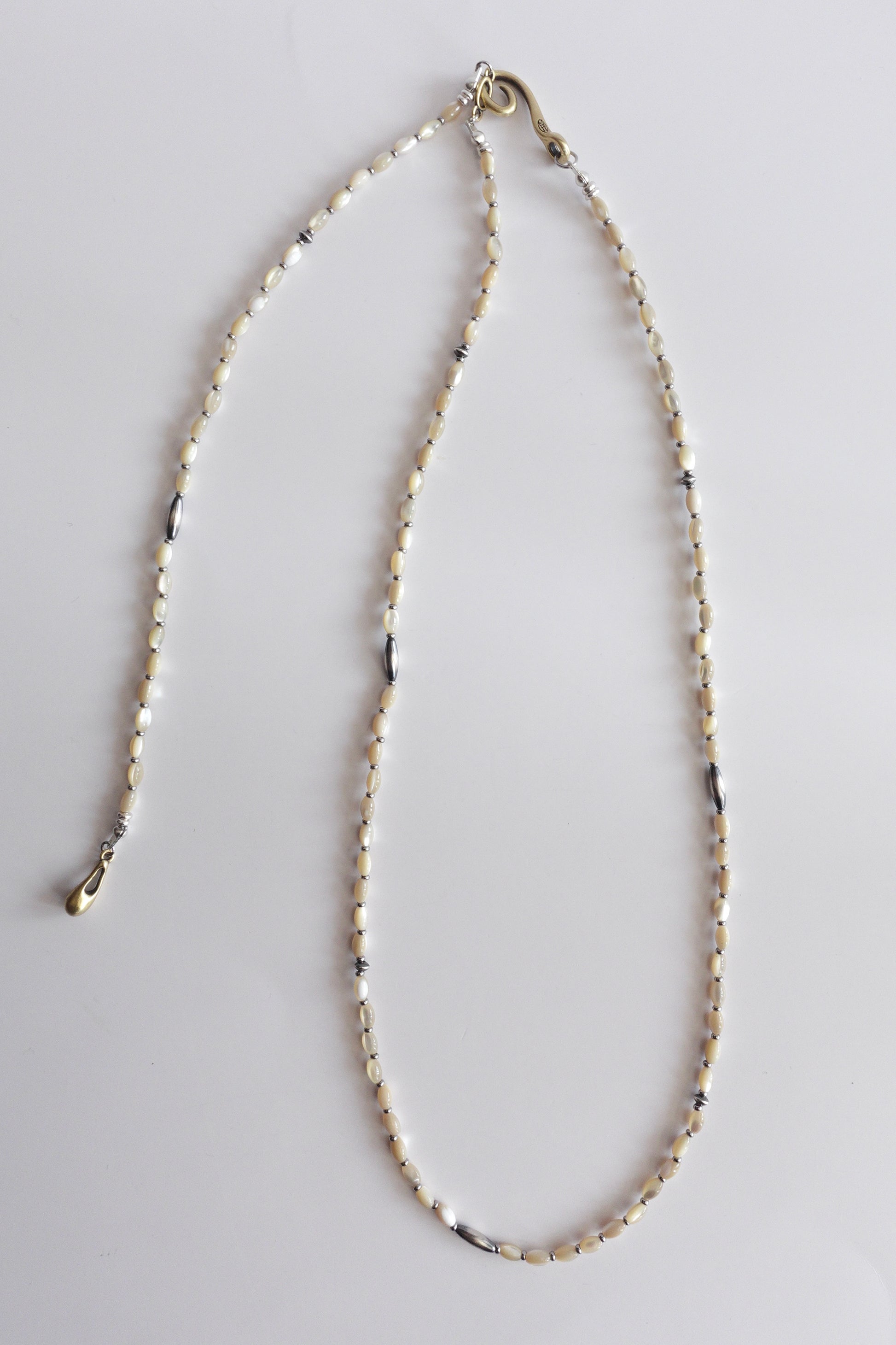 小粒のマザーオブパールが連なる姿は、柔らかな光が道を描いた“痕跡”のよう。